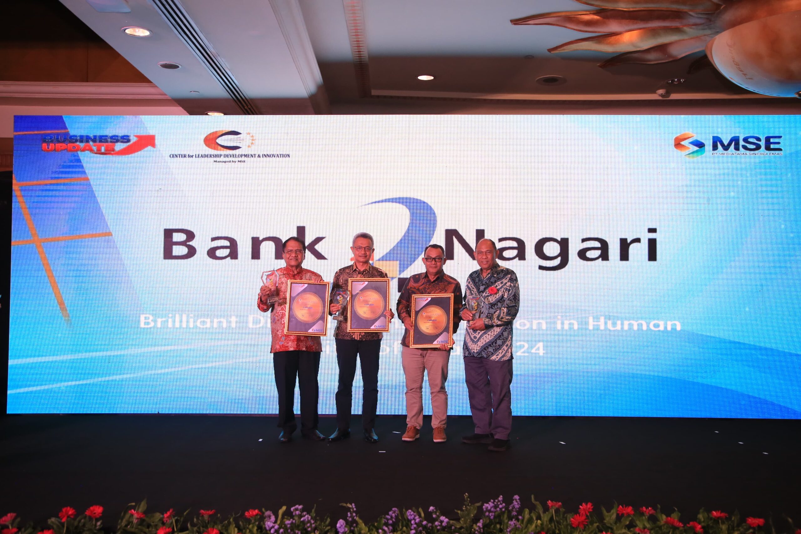Kemudian, kategori Brilliant Digital Transformation in Human Capital of Year 2024 predikat Silver. Penghargaan makin lengkap dengan terpilihnya Direktur Operasional Bank Nagari, Zilfa Efrizon sebagai Brilliant Director in HC Transformation of Year 2024.