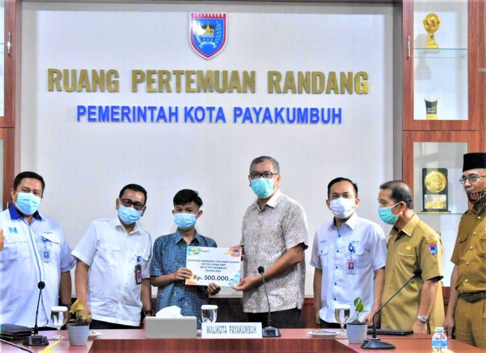 Dana itu kemudian diserahkan secara simbolis kepada lima pelajar dari tingkat Sekolah Dasar (SD) dan Sekolah Menengah Pertama (SMP) di Kantor Balai Kota Payakumbuh, Selasa (16/2/2021).