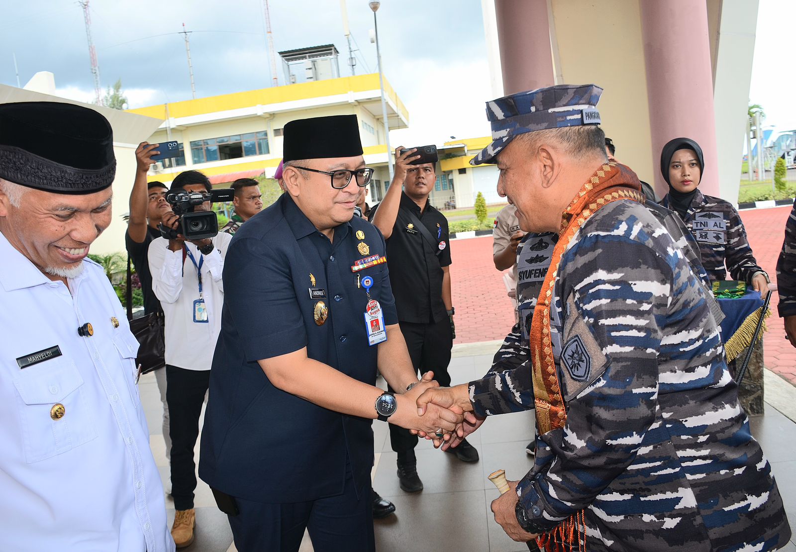 Pj Wako Padang menyampaikan selamat datang kepada Pangkoarmada I yang hadir ke Ranah Minang untuk melihatkan kepedulian terhadap bencana banjir bandang dan longsor yang menimpa Sumbar.