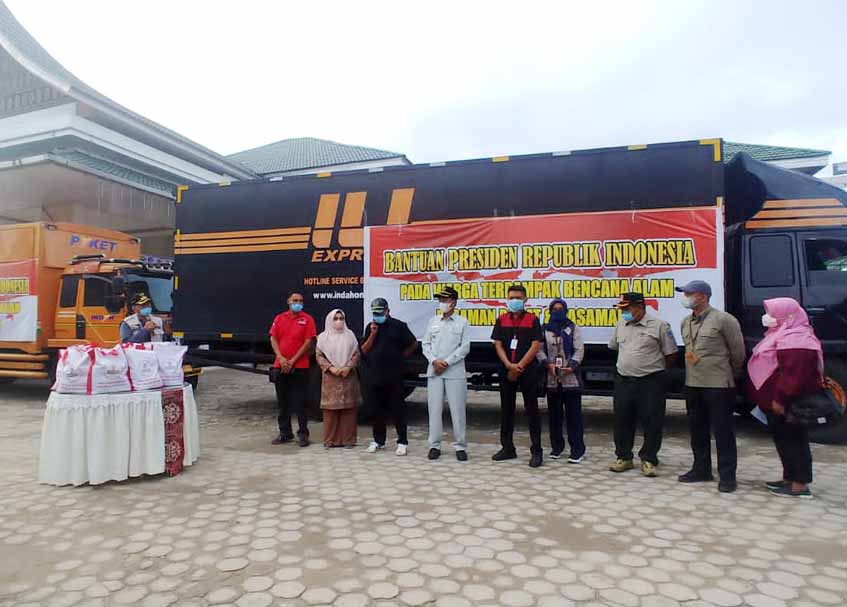 Bupati Pasaman Barat, Hamsuardi menerima langsung bantuan presiden tersebut di halaman kantor bupati atau di posko utama pengungsian.