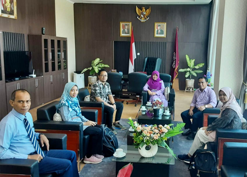Dengan senang hati rombongan langsung disambut di ruang kerja Rektor, Martin Kustati yang didampingi oleh Wakil Rektor Bidang Akademik dan Kelembagaan Yasrul Huda, Wakil Rektor Bidang Perencanaan, Keuangan dan Umum Testru Hendra, Kepala Perpustakaan, Resti Jayanti Fakhlina, PPK/ Kepala Sub. TU, Pajri Hidayat dan Kepala Sub. Perlengkapan dan Pengadaan, Deni Erianto beserta staf lainnya.