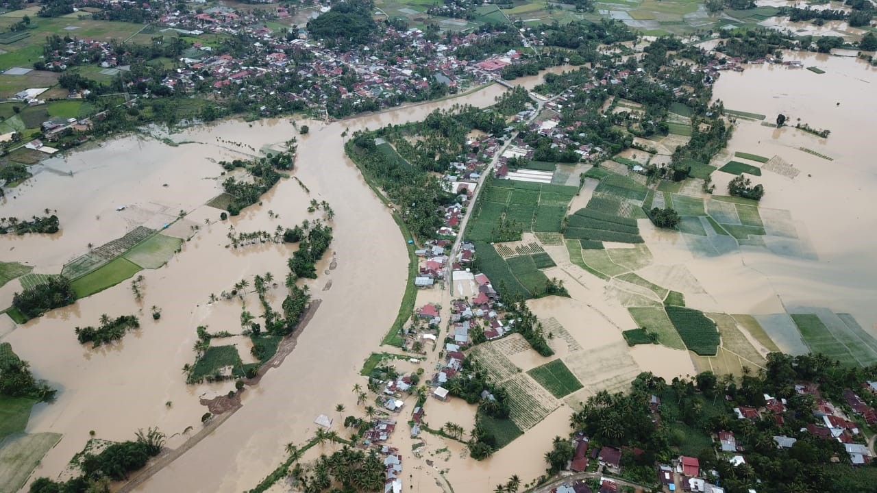 “Kami sudah antisipasi, mendirikan tenda bagi masyarakat yang mengungsi. Tapi sekarang belum ada yang mengungsi. Kami antisipasi aja. Untuk persawahan ada puluhan hektar yang terdampak,” katanya.