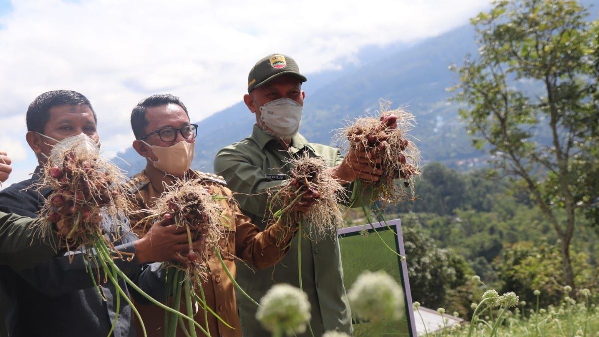Langgam.id – Gubernur Sumbar Mahyeldi menghadiri panen perdana bawang varietas unggul batu ijo di Nagari Pandai Sikek, Tanah Datar, Selasa (21/9/2021).
