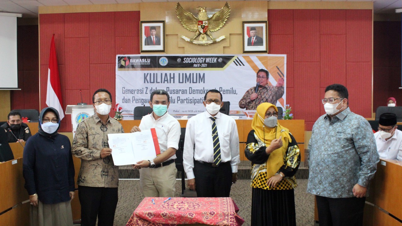 Lebih jauh, melalui kesempatan Kuliah Umum yang diselenggarakan atas kerja sama antara Bawaslu-R.I dengan Labor Jurusan Sosiologi, FIS-UNP ini, dan untuk meningkatkan peran serta perguruan tinggi di dalam pengawasan partisipatif terutama dalam menghadapi pemilu 2024, Bawaslu Sumatra Barat menjalin kerjasama melalui penandatanganan MoU dengan fakultas Ilmu Sosial dan PKS dengan 3 Prodi di lingkungan FIS; Prodi Pendidikan Sosiologi, PPKN, dan S2 PPKN.