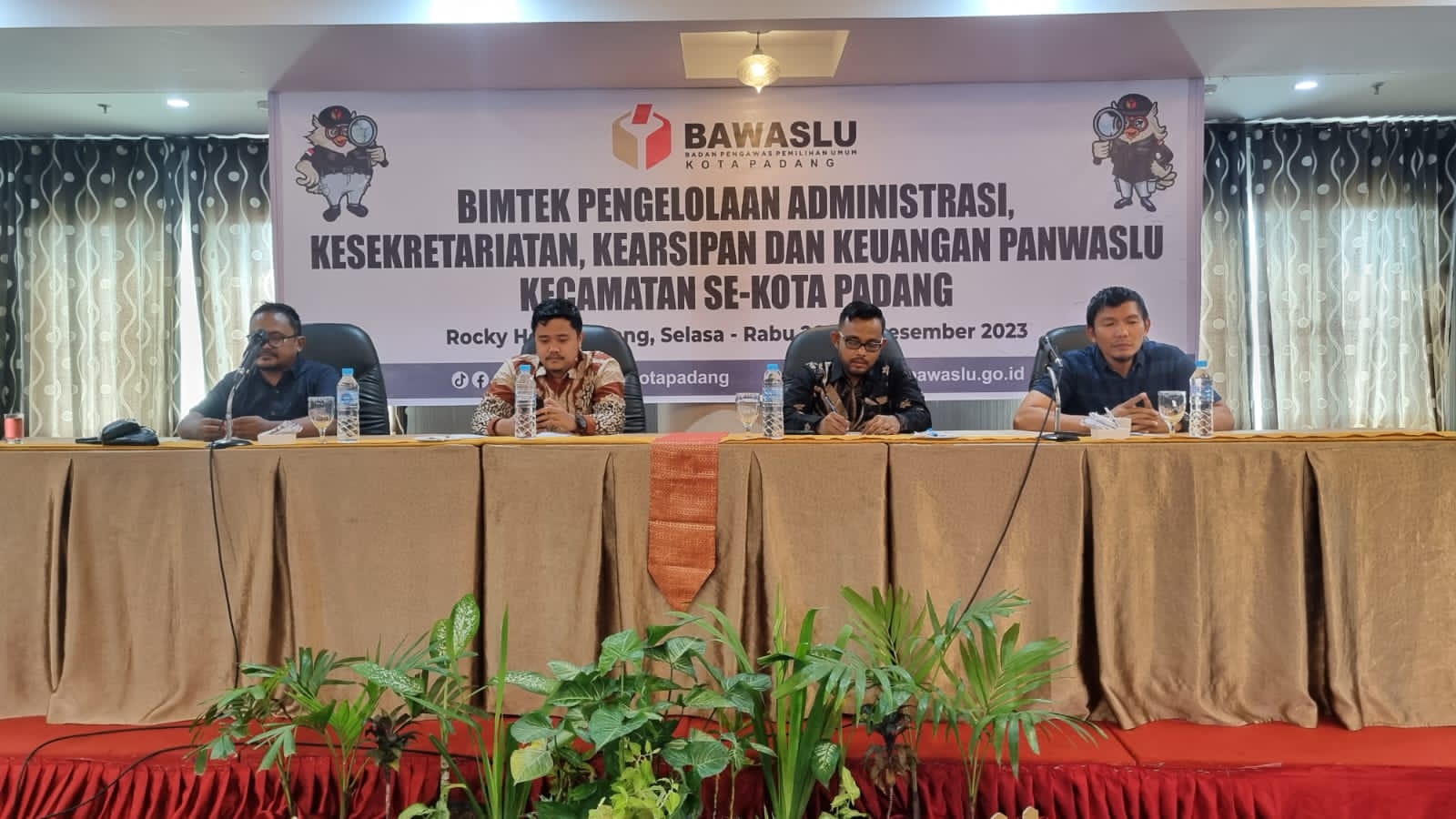 Langgam.id – Bawaslu mengadakan Bimbingan Teknis Pengelolaan Administrasi, Kesekretariatan, Kearsipan dan Keuangan Panwaslu Kecamatan se-Kota Padang, Selasa-Rabu (26-27/12/2023) di Rocky Hotel Padang.