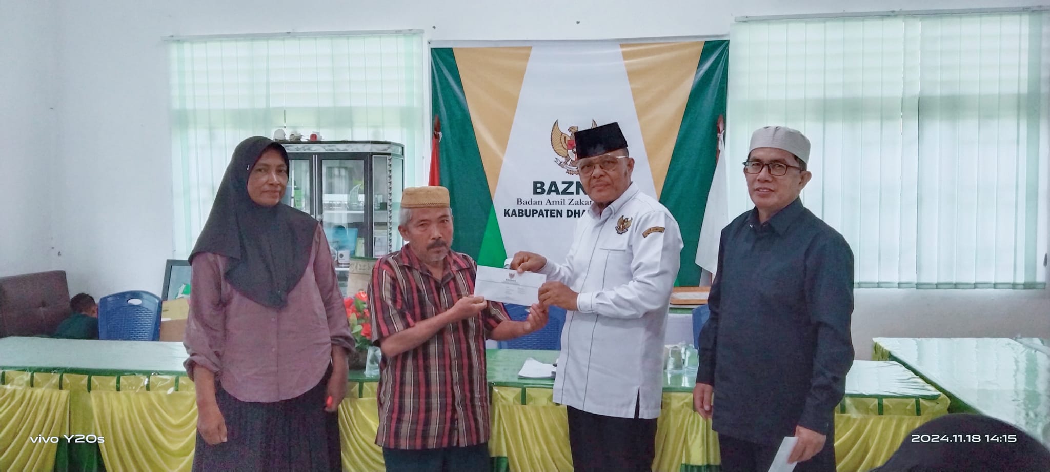 Ketua Baznas Dharmasraya, Z Lubis melakukan penyerahan bantuan tersebut di kantor Baznas Kabupaten Dharmasraya didampingi oleh amil pelaksana.