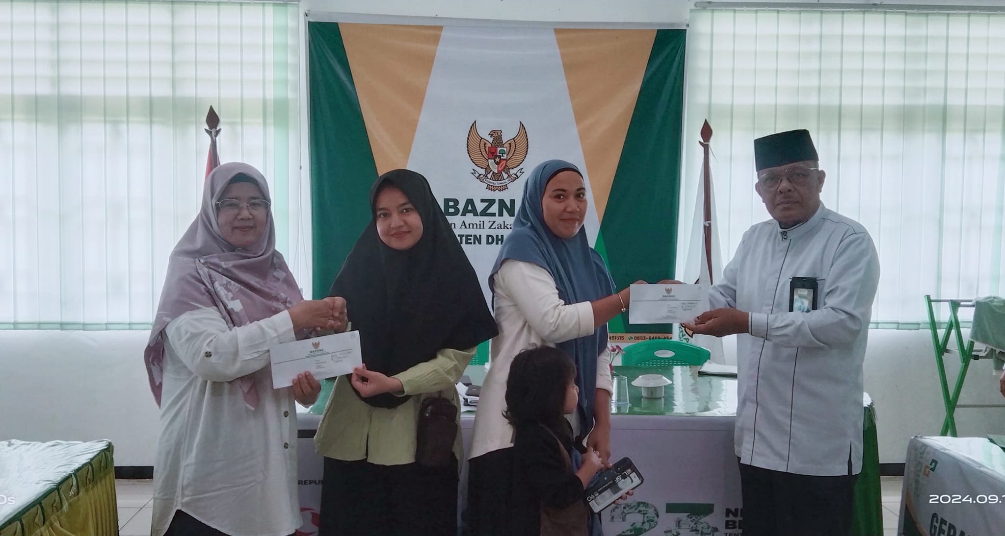 Ketua Baznas Dharmasraya, Z Lubis menyerahkan bantuan tersebut di kantor Baznas Kabupaten Dharmasraya didampingi oleh amil pelaksana.