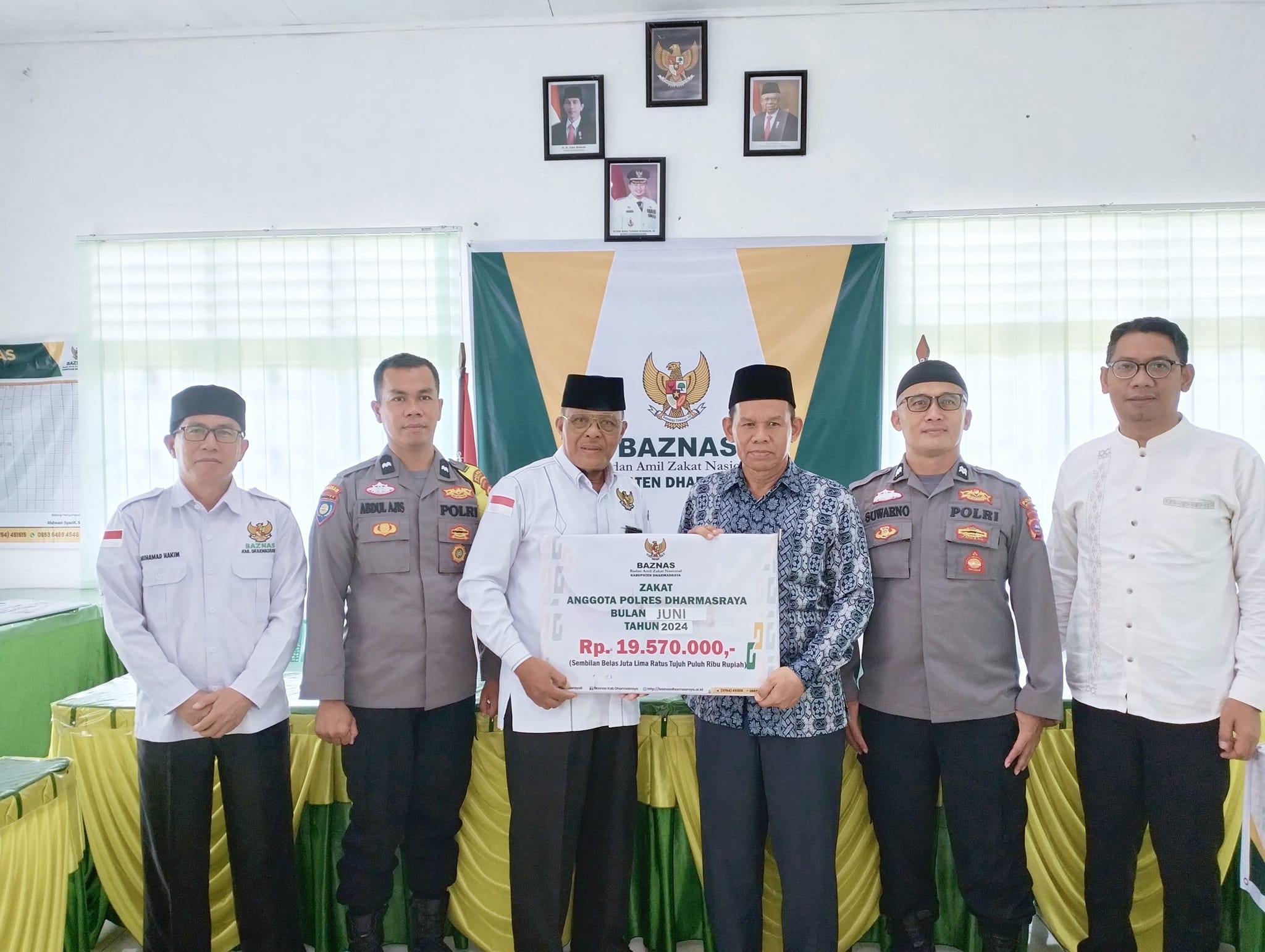 InfoLanggam – Badan Amil Zakat Nasional (Baznas) Dharmasraya menerima zakat profesi dari personel Polres Dharmasraya pada Rabu (19/6/2024).