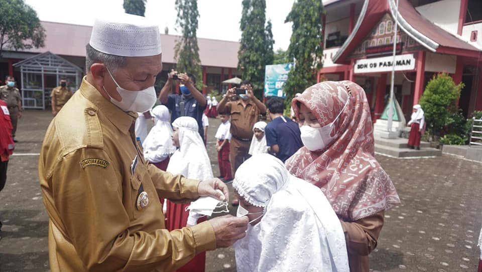 Jumlah masker yang dibagikan kepada para siswa di Pasaman Barat mencapai 55 ribu. Cara itu diharapkan bisa mencegah para siswa dari paparan Covid-19.