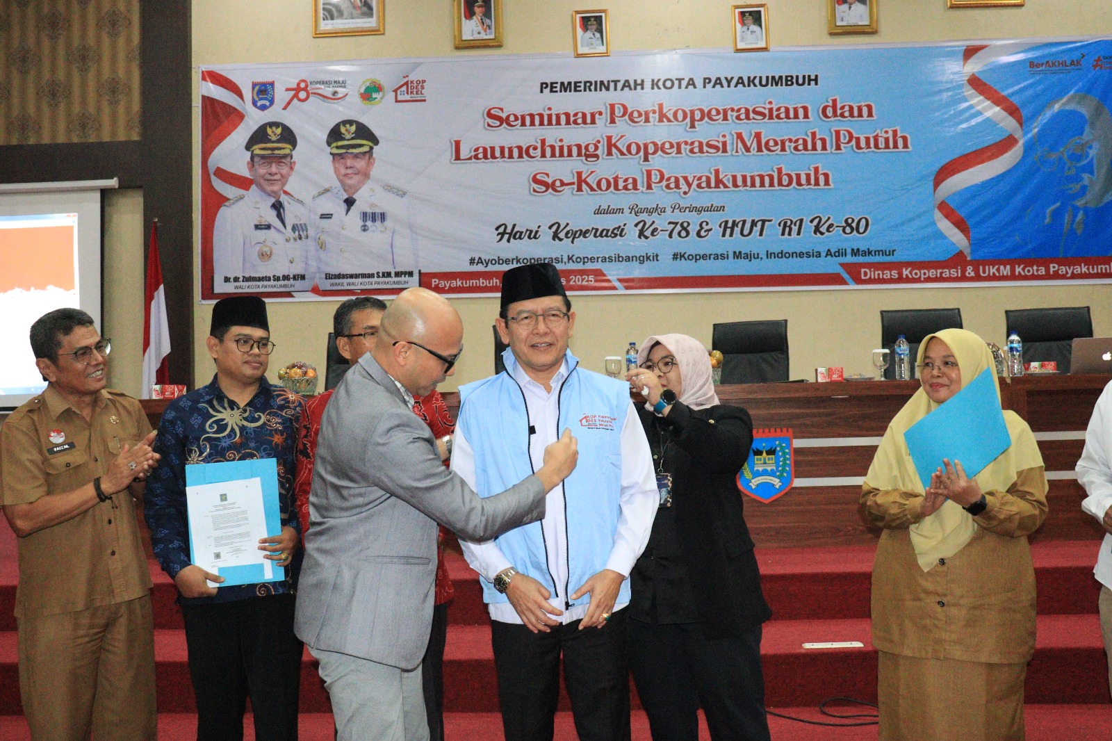 Dengan mengucapkan Bismillahirrahmanirrahim, Wali Kota Payakumbuh secara resmi meluncurkan 47 kelembagaan Koperasi Kelurahan Merah Putih di Kota Payakumbuh.