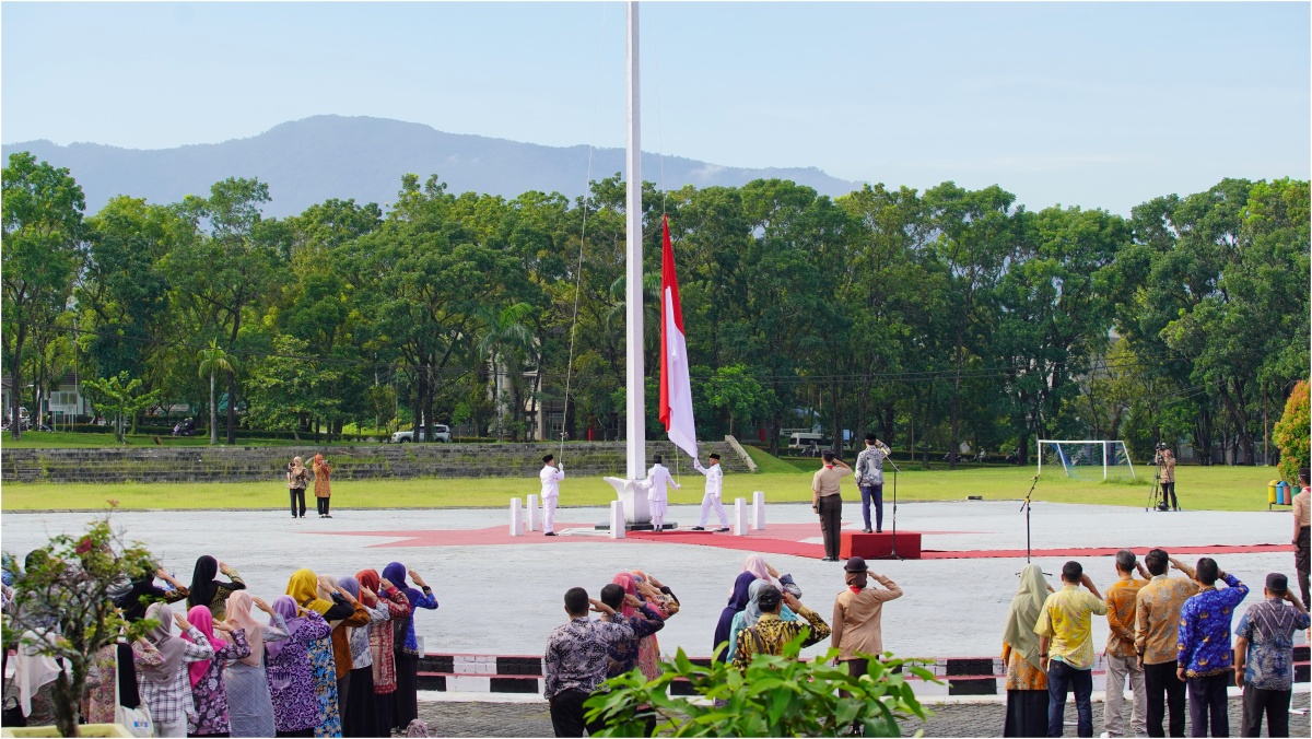 Upacara ini, diikuti oleh segenap unsur pimpinan, dosen, tenaga kependidikan, hingga mahasiswa hadir pada di lapangan upacara rektorat.