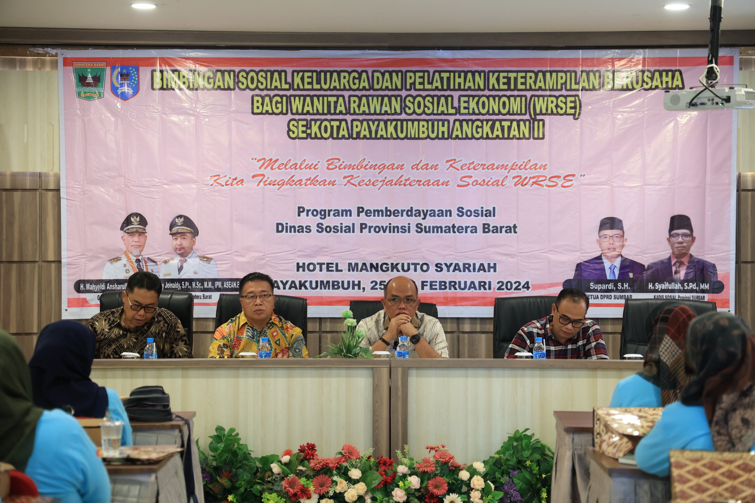 LanggamInfo – Ketua DPRD Sumatera Barat, Supardi, SH, membuka kegiatan bimbingan sosial keluarga dan pelatihan berusaha bagi Wanita Rawan Sosial Ekonomi (WRSE) Angkatan II di Hotel Mangkuto, Payakumbuh.