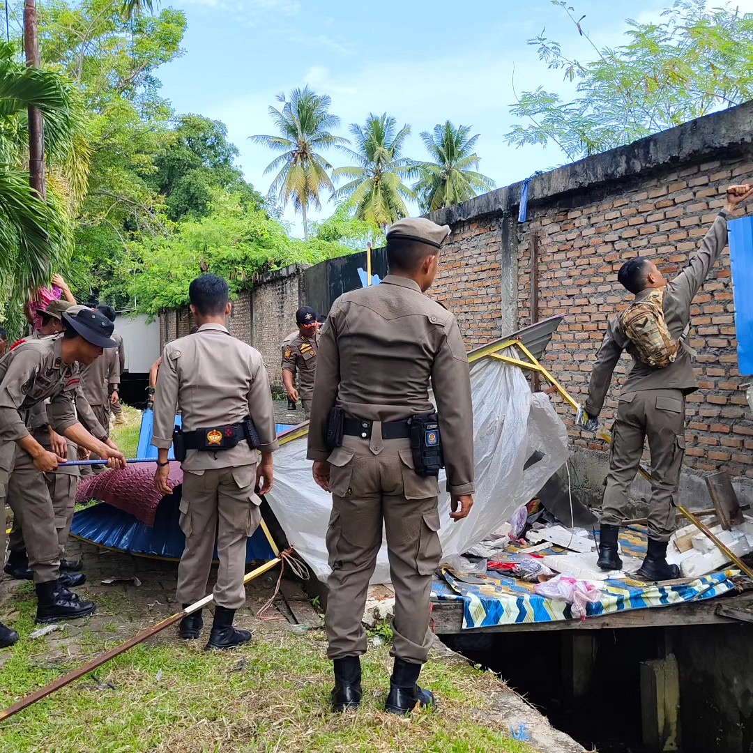 “Pemilik telah melanggar Perda 11 Tahun 2005 tentang Ketertiban Umum dan Ketentraman Masyarakat, pihak kelurahan hingga Kecataman juga sudah menyurati pemilik, namun tidak di indahkan. Maka terpaksa kita bongkar dan semua puing-puing bangunannya kita bantu untuk dipindahkan ke rumahnya,” ujar Chandra dalam keterangan tertulisnya.