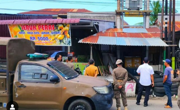 Satpol PP bersama Kasi Trantib Kecamatan, terangnya, sudah mendatangi lokasi. Selain memastikan laporan masyarakat tersebut, juga untuk melakukan pendekatan dan mengingatkan pemilik terhadap bahaya yang dapat ditimbulkan oleh bangunan tersebut.