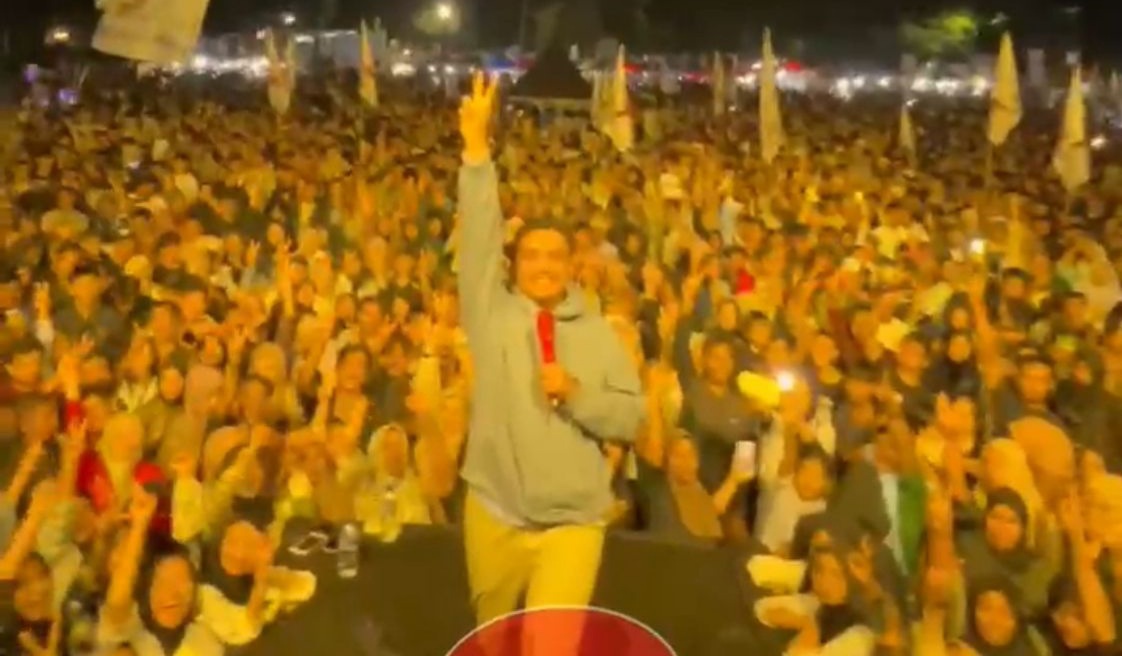 Belasan ribu warga begitu antusias menyaksikan konser, sekaligus penyampaian visi misi dan program dari Paslon Capres-Cawapres nomor urut 2 Prabowo-Gibran.