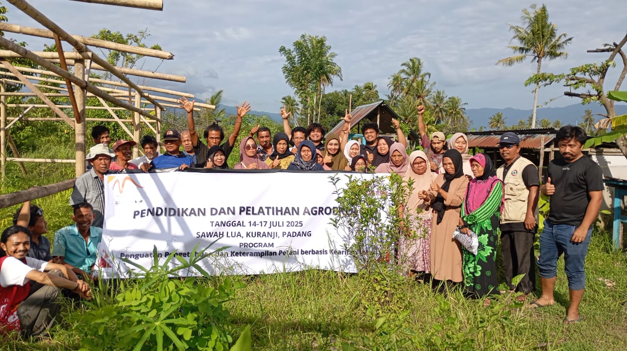 Bagi Nafrizal (42), seorang petani dari Gurun Laweh, Nanggalo, pelatihan ini bukan sekadar tambahan ilmu—tapi cahaya baru di ujung lorong panjang kegagalan. Ia bertani di ladang kontrak setengah hektare di kawasan Surau Gadang, pinggir Batang Kuranji. “Saya tanam padi dan pario (pare), kadang mentimun. Tapi sekarang air batang air tinggal nama. Kering. Anomali cuaca bikin panen berkurang sampai 40 persen,” keluhnya.