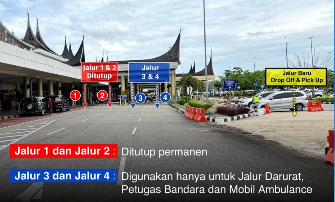Langgam.id – Pengelola Bandara Internasional Minangkabau (BIM) melakukan penyesuaian tata layanan pergerakan kendaraan di area sisi darat. Perubahan berlaku mulai 21 Maret 2025 yang bertujuan meningkatkan kelancaran lalu lintas, menjelang puncak arus mudik Lebaran.