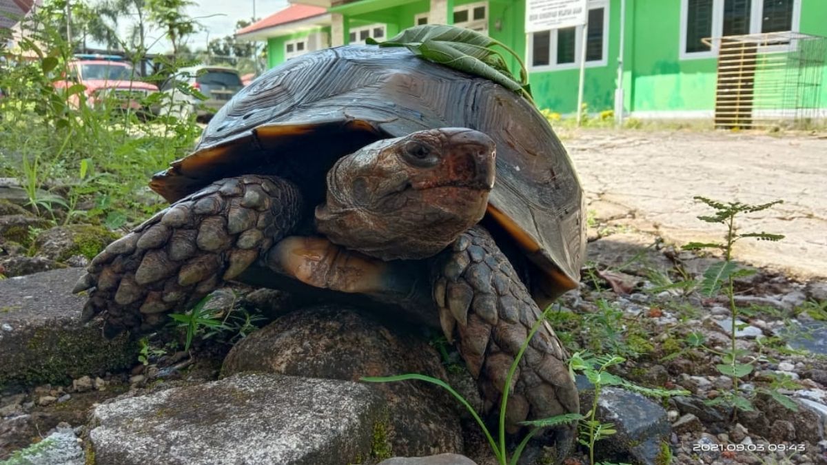 Petugas BKSDA langsung melakukan identifikasi terhadap satwa reptil tersebut. Berdasarkan hasil identifikasi diketahui jenisnya adalah Kura kura kaki Gajah atau Baning Coklat berkelamin jantan.