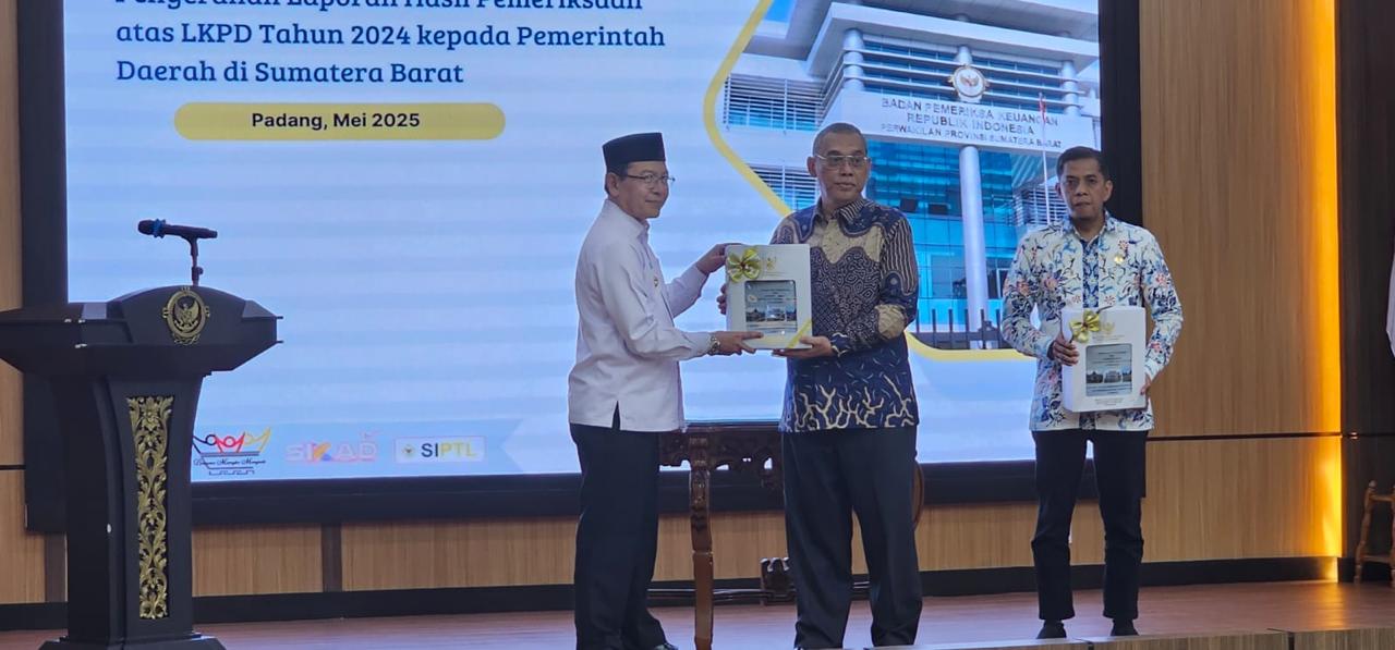 Langgam.id — Badan Pemeriksa Keuangan Republik Indonesia (BPK-RI) Perwakilan Provinsi Sumatera Barat menyerahkan Laporan Hasil Pemeriksaan (LHP) atas Laporan Keuangan Pemerintah Daerah (LKPD) tahun anggaran 2024 kepada delapan pemerintah kabupaten/kota, Kamis (22/5/2025).