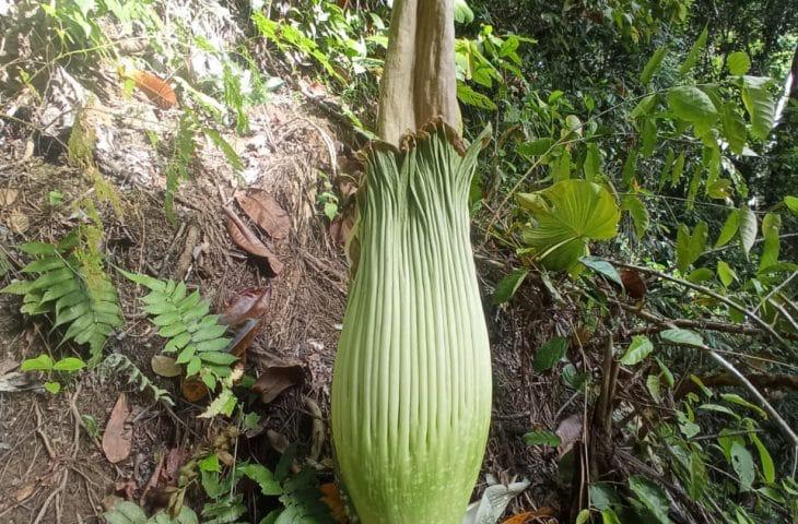 “Saat menuju kebun, saya tanpa sengaja melihat tanaman aneh dengan bentuk membulat dan panjang, mirip dengan bunga bangkai yang ditemukan di Sungai Landai beberapa waktu lalu,” ungkap Olwi, Selasa (15/12/2020).