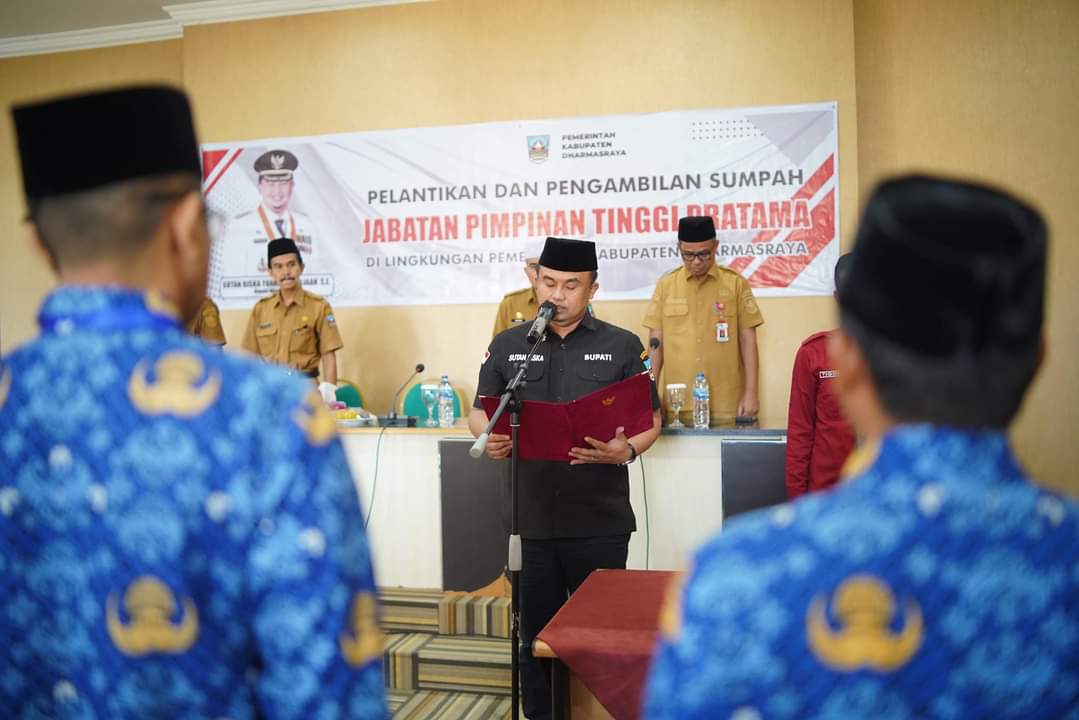 Langgam.id – Bupati Dharmasraya, Sutan Riska Tuanku Kerajaan mengambil sumpah jabatan sekaligus melantik pejabat Pimpinan Tinggi Pratama di lingkungan Pemkab Dharmasraya hasil Pansel, di Pulau Punjung, Senin (22/1/2024).