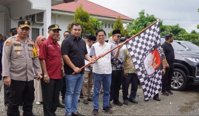 Pelepasan tersebut dilaksanakan di halaman Kantor KPU setempat serta turut disaksikan anggota Forkopimda pada Sabtu (10/2/2024)