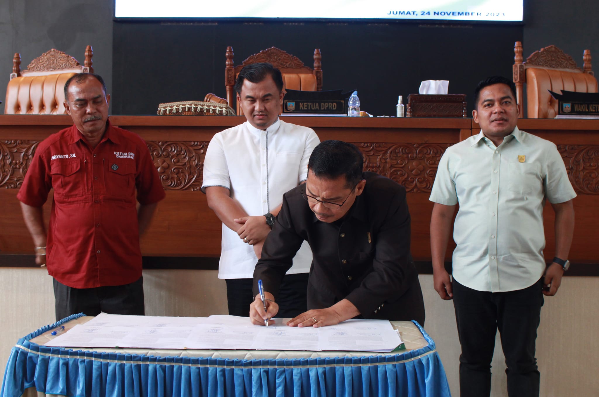 Penyampaian pendapat akhir ini dihadiri langsung Bupati Dharmasraya Sutan Riska Tuanku Kerajaan, Jumat (24/11/2023).