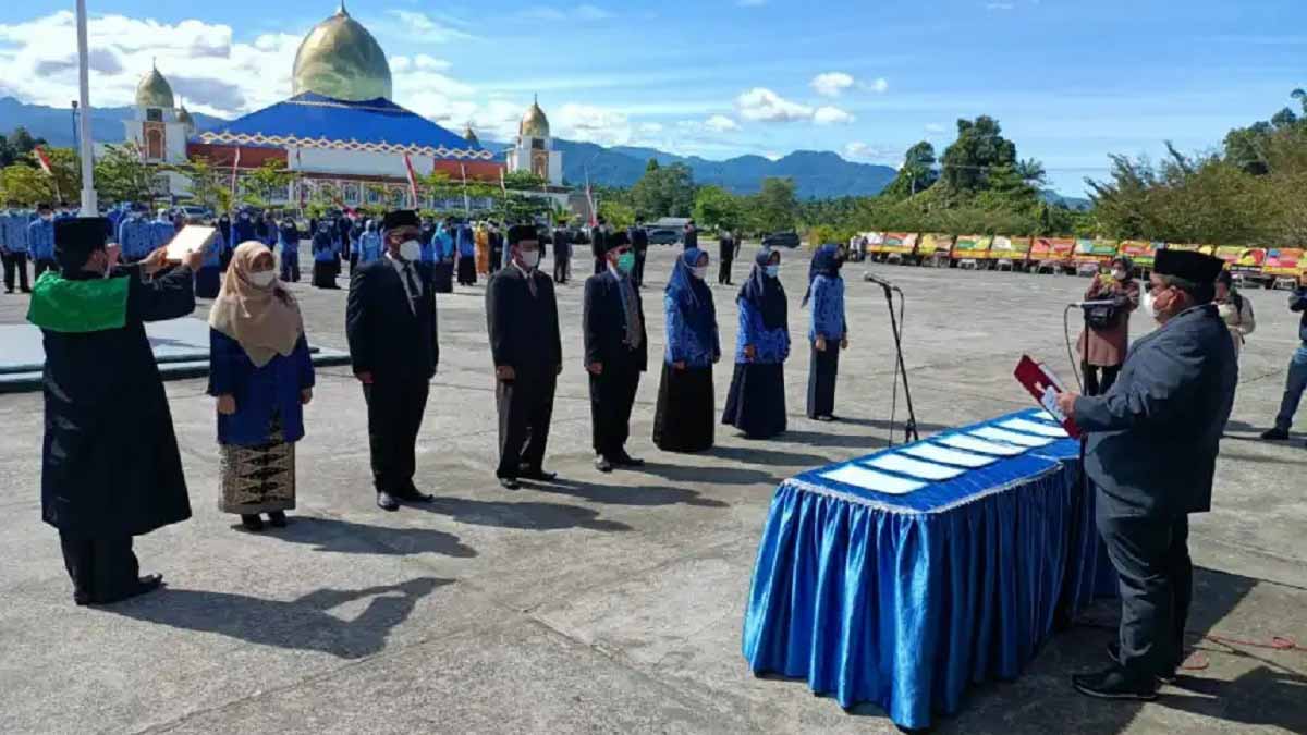 Pelantikan pejabat struktural dan fungsional tersebut digelar di halaman kantor bupati, Parit Malintang, Jumat (6/8/2021). Dalam pidatonya, bupati mengatakan, pejabat pemkab yang dilantik mayoritas untuk mengisi jabatan kosong, rotasi, serta sebagian promosi. Pelantikan pejabat ini merupakan perdana setelah Bupati Suhatri Bur dan Wakil Bupati Rahmang menjabat dalam periode 2021-2024.