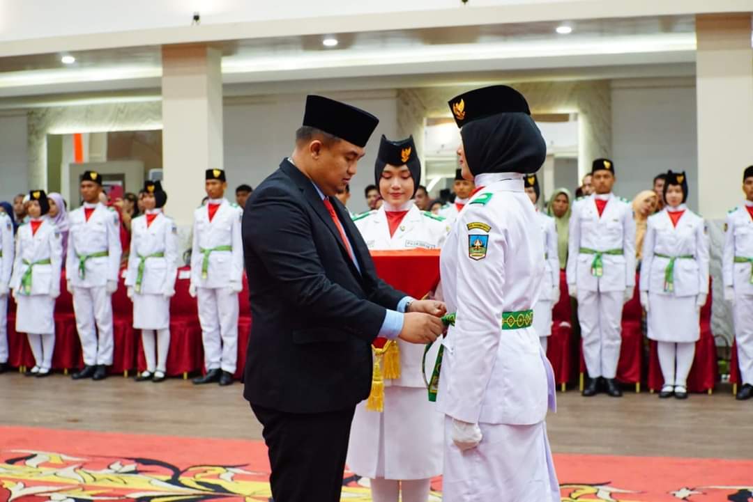 Bupati Dharmasraya Sutan Riska mengukuhkan 75 anggota Paskibraka. (Foto: Prokopim Dharmasraya)