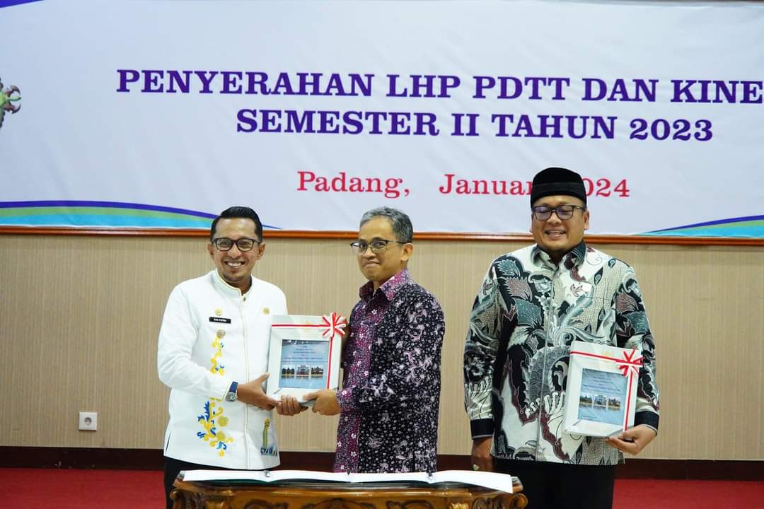Penyerahan LHP itu diberikan langsung oleh Ketua BPK RI Perwakilan Sumbar, Arif Agus kepada Bupati Tanah Datar Eka Putra dan Ketua DPRD Tanah Datar Rony Mulyadi Dt Bungsu disaksikan Asisten Administrasi Umum Jasrinaldi bersama OPD terkait, Jumat (5/1/2024) lalu.