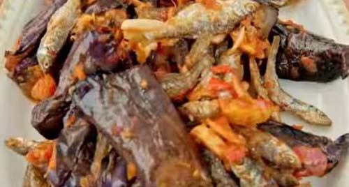 - Sebelum disajikan, aduk terong dengan ikan bili