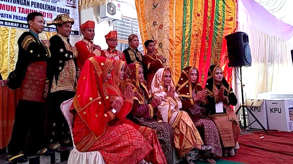 Berbeda dengan yang dilakukan komisioner KPU Pasaman Barat. Mereka justru mengenakan pakaian adat dengan etnis berbeda ketika melakukan rapat pleno rekapitulasi suara Pemilu 2019 yang berlangsung di halaman kantor KPU Pasaman Barat, kemarin.