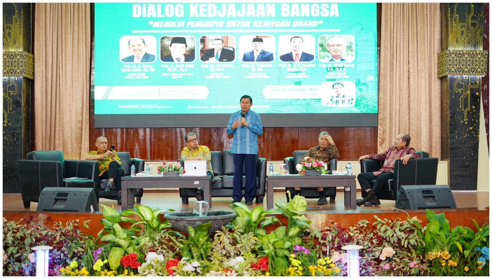 Berlangsung di Gedung Convention Hall pada Jumat (1/9/2023) dengan menghadirkan berbagai narasumber yakni Prof. dr. Fasli Jalal (Rektor Universitas Yarsi), Prof. Arif Satria,M. Si (Rektor IPB University), Prof. Musliar Kasim, MS (Rektor Universitas Andalas periode 2006-2011), Prof. Werry Darta Taifur, MA (Rektor Universitas Andalas Periode 2011-2015), dan Prof Tafdil Husni, SE, MBA (Rektor Universitas Andalas Periode 2015-2019).