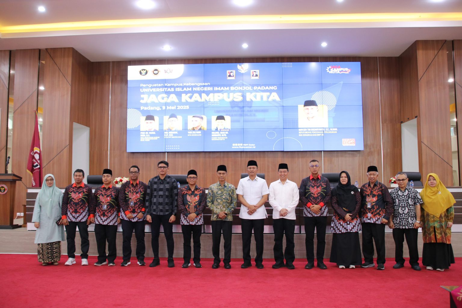 InfoLanggam – Sekitar 500 mahasiswa UIN Imam Bonjol Padang mengikuti kegiatan bertajuk Penguatan Kampus Kebangsaan dengan tema “Jaga Kampus Kita”, yang digelar di Gedung J Kampus III Sungai Bangek, Jumat (9/5/2025).