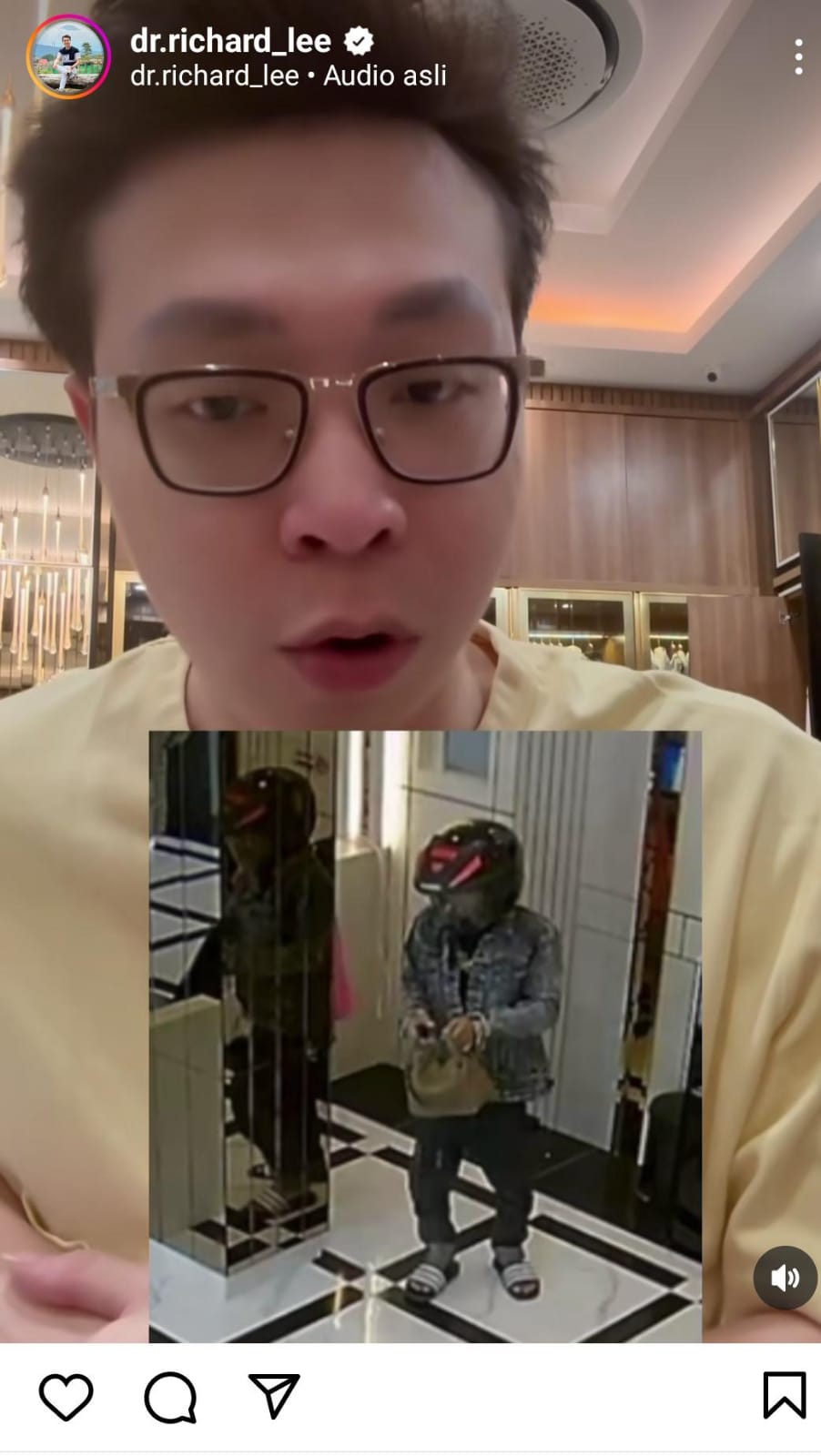 Sembari menceritakan soal kejadian itu, dalam akun pribadinya, dr Richard Lee juga mengunggah video CCTV yang berhasil merekam aksi pelaku.