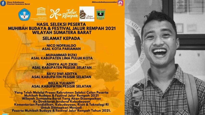 Nico bersama lima putera puteri Sumbar berhasil lolos proses rekrutmen seleksi calon peserta yang digelar awal Juni lalu. Adapun 4 peserta asal Sumbar lainnya yang lulus yakni Muhammad Rizki (Kabupaten Limapuluh Kota), Adhiya Alfi Zikri (Kabupaten Pesisir Selatan), Bayu Dwi Aditya (Kabupaten Pesisir Selatan) dan Bella Yulianti (Kabupaten Pesisir Selatan).