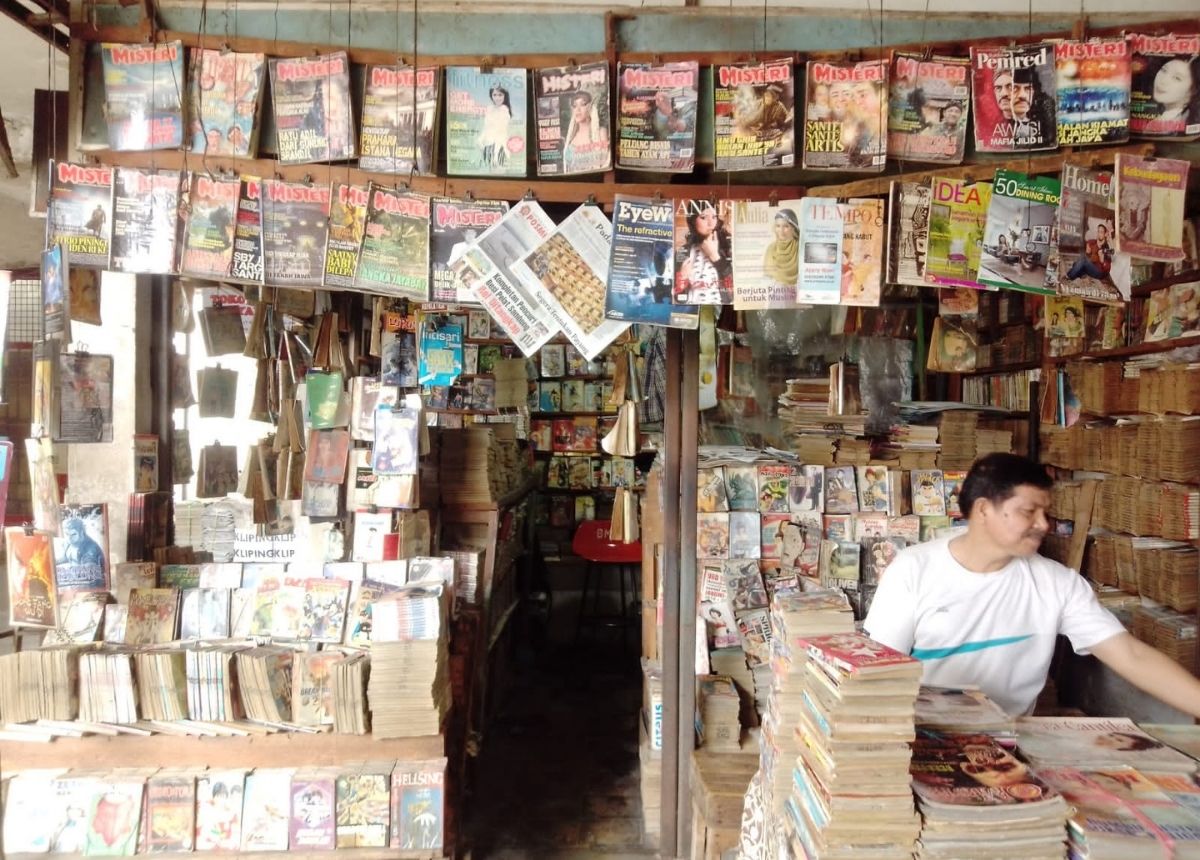 Langgam.id – Eri (59), terlihat sedang merapikan komik-komik dan majalah bekas. Kegiatan itu ia lakukan saban hari, walau sebenarnya tidak ada yang perlu dirapikan.