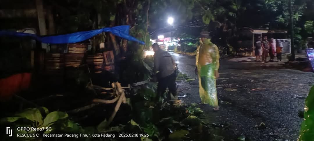 Langgam.id – Cuaca ekstrem berupa hujan deras disertai angin kencang yang melanda sejumlah wilayah Kota Padang, Selasa (18/2/2025) malam WIB mengakibatkan terjadinya pohon tumbang di beberapa titik.