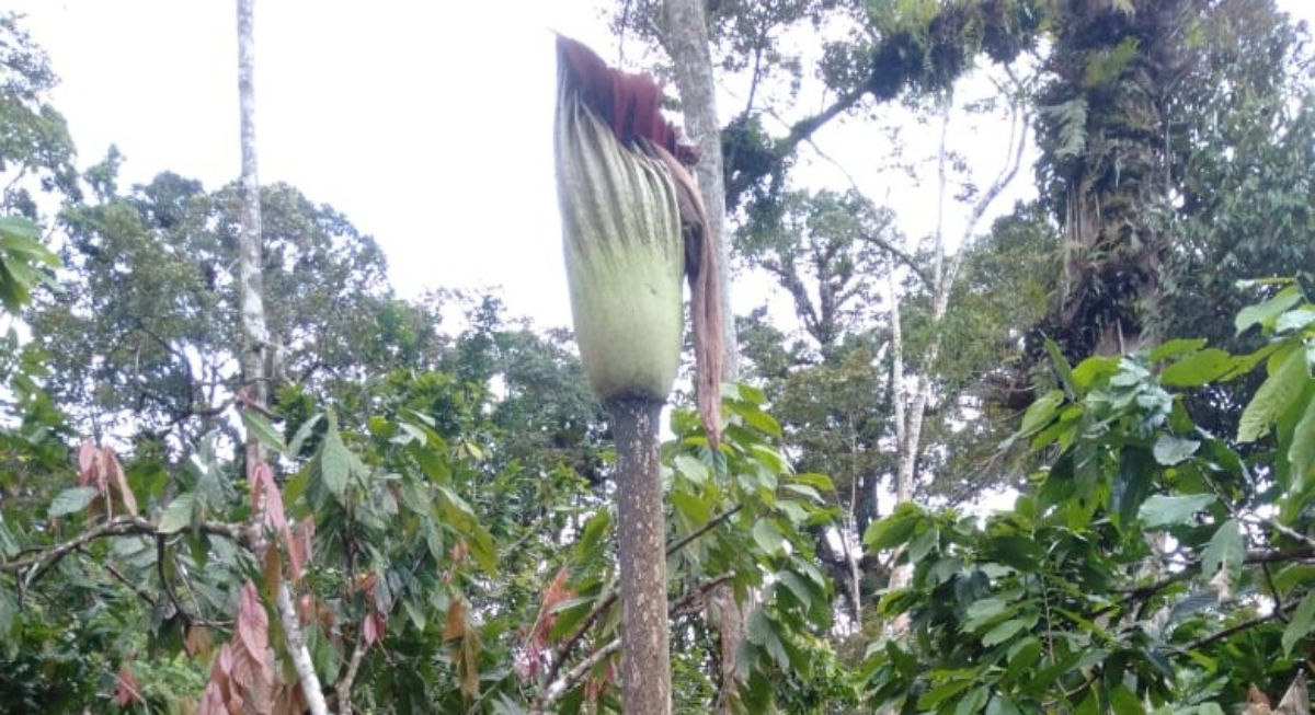 Langgam.id-Bunga bangkai dengan tinggi 4,13 meter gagal mekar sempurna di Nagari Koto Malintang, Kecamatan Tanjung Raya, Kabupaten Agam, Sumatra Barat (Sumbar). Bunga langka itu layu sebelum mekar sempurna diduga akibat curah hujan tinggi yang terjadi di sekitar lokasi.