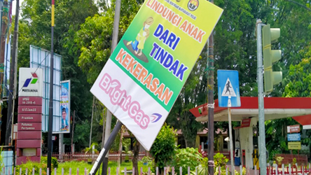 Papan iklan itu diketahui milik Divisi Hubungan Masyarakat (Humas) Polri yang bertuliskan berupa imbauan. Adapun tulisan di papan iklan itu “Lindungi Anak dari Tindak Kekerasan”.