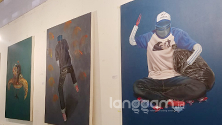 Lukisan yang dipajang Salman, menyajikan berbagai sudut pandangan terkait kondisi sampah plastik serta dampaknya terhadap lingkungan sekitar. Salah satunya, lukisan dengan judul ‘Coboy’.