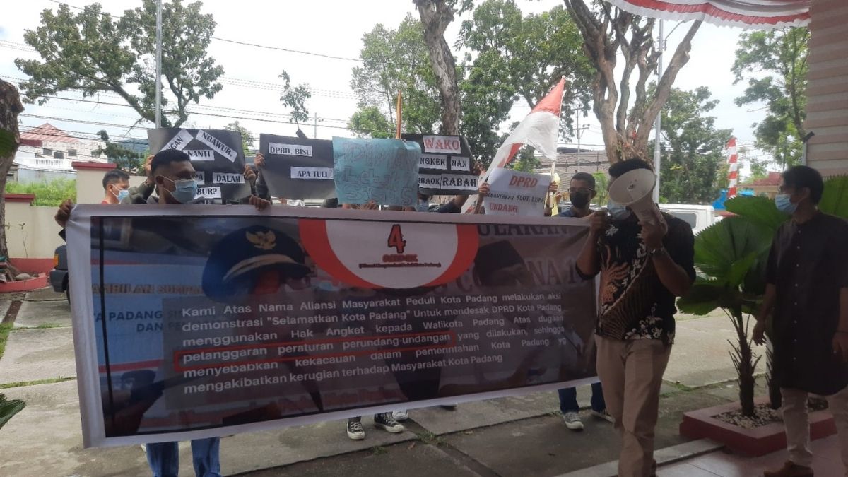 “Wali kota ngawur, DPRD mandul,” kata peserta aksi menuntut agar DPRD Padang ikut menindaklanjuti agar wali kota mengambil kebijakan sesuai aturan.