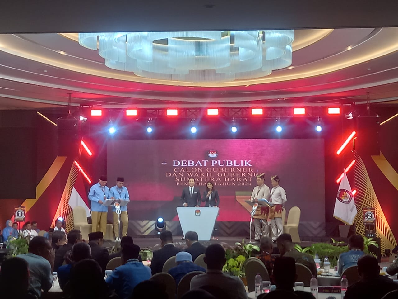 Langgam.id – Debat publik pertama pasangan calon Gubernur dan Wakil Gubernur Sumatera Barat Pemilihan Tahun 2024 berlangsung di Hotel Mercure, Kota Padang, Rabu (13/11/2024) malam. Dua pasangan calon, Mahyeldi – Vasco Ruseimy (nomor urut 01) dan Epyardi Asda – Ekos Albar (nomor urut 02), saling beradu gagasan terkait transformasi pemerintahan berbasis elektronik atau e-government.