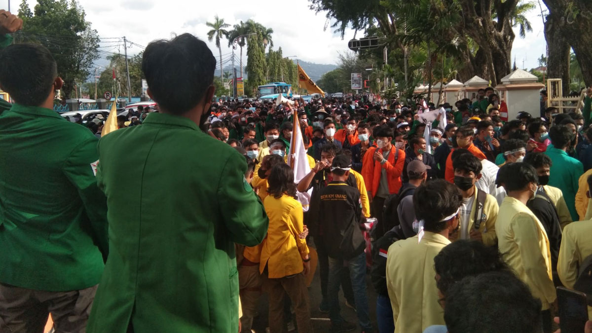 Presiden Mahasiswa Universitas Andalas, Teza, dalam orasinya menyebut para peserta aksi masuk untuk hanya melaksanakan salat Asar bersama. Sementara polisi menjaga gerbang masuk gedung tersebut.