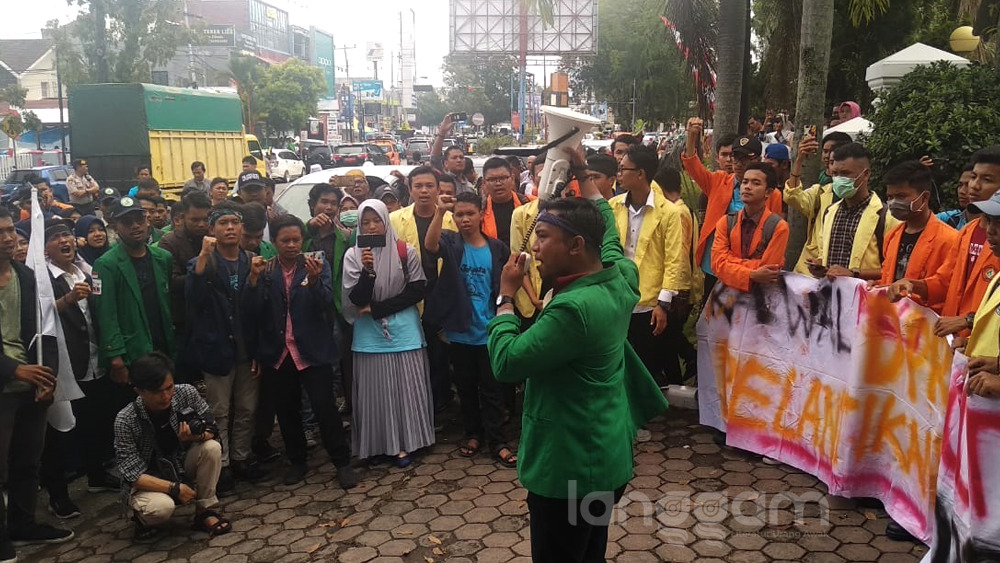 Langgam.id – Pelantikan Anggota Dewan Perwakilan Rakyat Daerah (DPRD) Sumatra Barat (Sumbar) periode 2019-2024 diwarnai aksi demonstrasi. Puluhan mahasiswa dari berbagai kampus di Kota Padang yang tergabung dalam Badan Eksekutif Mahasiswa (BEM) Sumbar itu menggelar aksi di Tugu Adipura Padang, Rabu (28/8/2019) pagi.