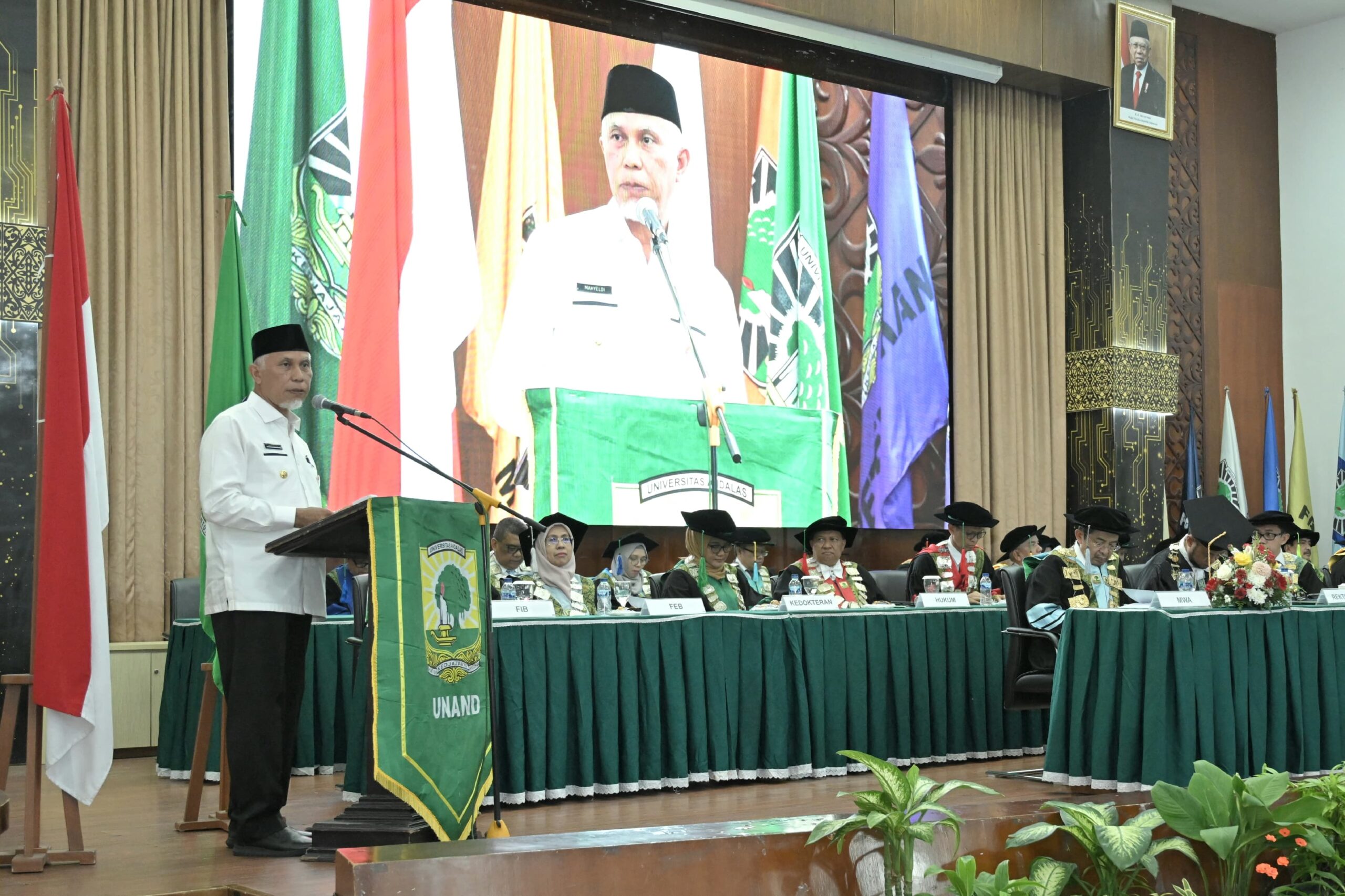 Apresiasi itu disampaikan Mahyeldi saat memberikan sambutan dalam Dies Natalis UNAND ke-68 tahun 2024 di Convention Hall Kampus Limau Manis, Jum’at (13/09/2024).