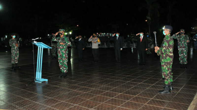 “Kami yang hadir pada malam hari ini Minggu 16 Agustus 2020 pukul 20.00 Wib, pada upacara memperingati jasa-jasa para pahlawan TNI sebanyak 879 orang, polri 95 orang, Badan Perjuangan sipil 286 orang, pejuang rakyat 1 orang, dan pahlawan tak dikenal 49 orang.