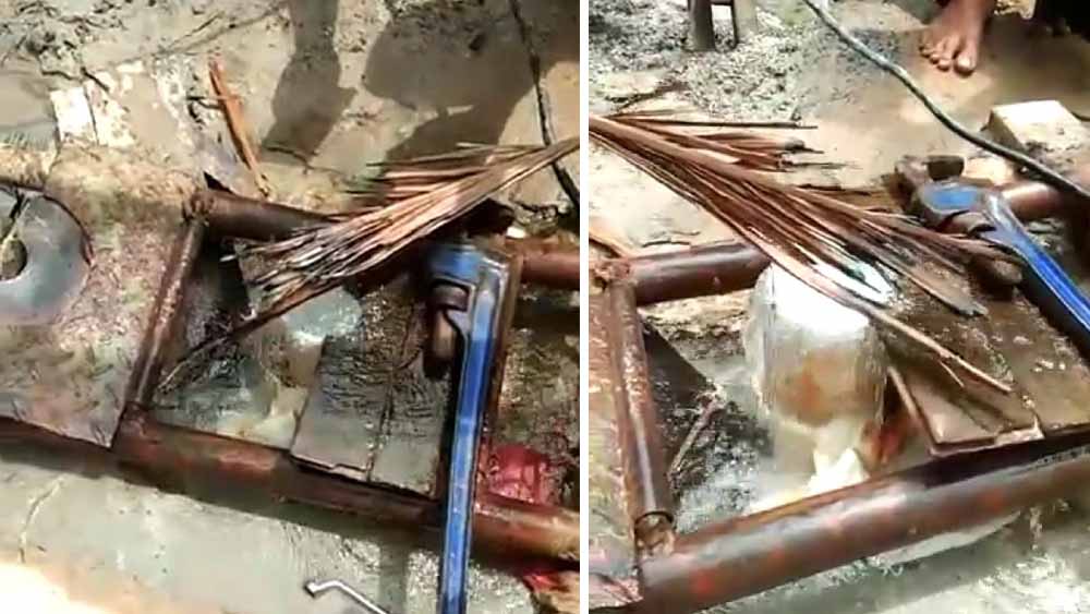 Dalam video itu, terlihat para pekerja berada di lokasi sumur bor. Salah seorang dari mereka memperlihatkan api yang dikeluarkan dari sumur dengan menaruh daun di atas permukaan sumur tersebut. “Yang di cari air bersih, keluar air asin, keluar api. Hebat,” kata salah seorang dalam video. (Irwanda/SS)