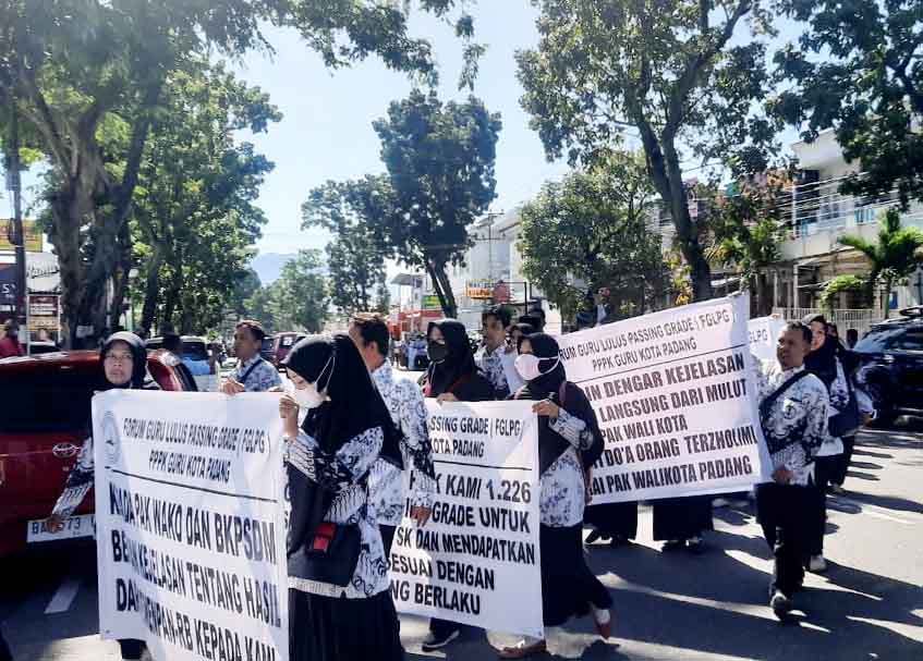 Diketahui, Forum Guru Lulus Passing Grade (FGLPG) Kota Padang melakukan unjuk rasa di DPRD Kota Padang. Mereka meminta DPRD Kota Padang turut serta memperjuangkan hak mereka untuk mendapatkan status guru PPPK di Kota Padang.