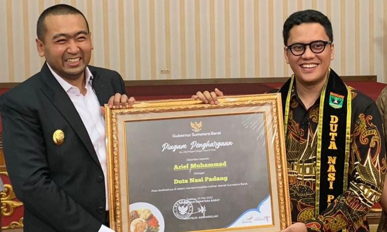 Datang memenuhi panggilan Wagub, Jum’at (20/5/2022), pemanggilan Arief Muhammad ternyata untuk dinobatkan oleh Pemerintah Provinsi Sumatra Barat sebagai Duta Nasi Padang. Audy mengatakan, Arief Muhammad sebagai orang Minangkabau di rantau telah banyak berkontribusi mempromosikan Sumatra Barat, terutama nasi padang.